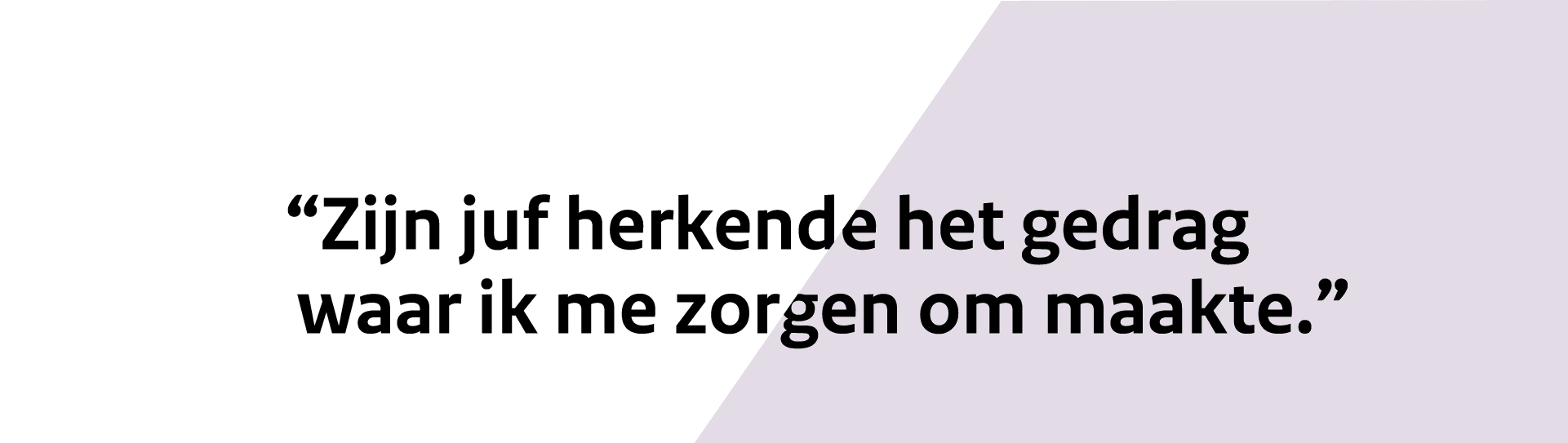 "Zijn juf herkende het gedrag waar ik me zorgen om maakte."
