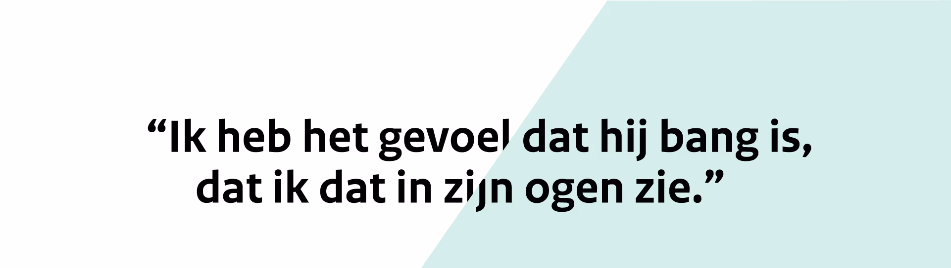 "Ik heb het gevoel dat hij bang is, dat ik dat in zijn ogen zie."