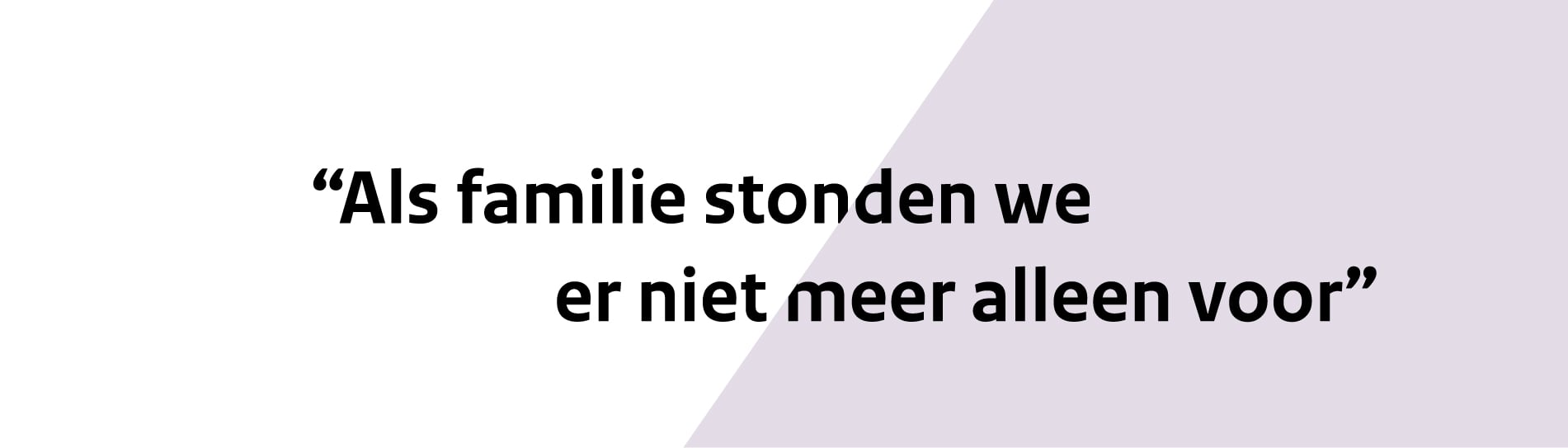 "Ik besloot dat het niet langer zo kon doorgaan en vroeg advies aan Veilig Thuis. Ik voelde me gehoord in wat ik deed om de situatie voor mijn moeder en broer te verbeteren. Als familie stonden we er niet meer alleen voor. Veilig Thuis bracht ons onder andere in contact met het wijkteam. Ook zetten we een familieberaad op. Samen keken we hoe we mijn moeder konden steunen."